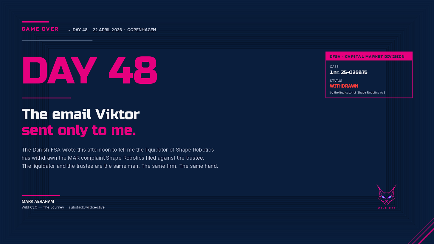 April 22, 2026. Day 48. The Email Viktor Sent Only to Me.